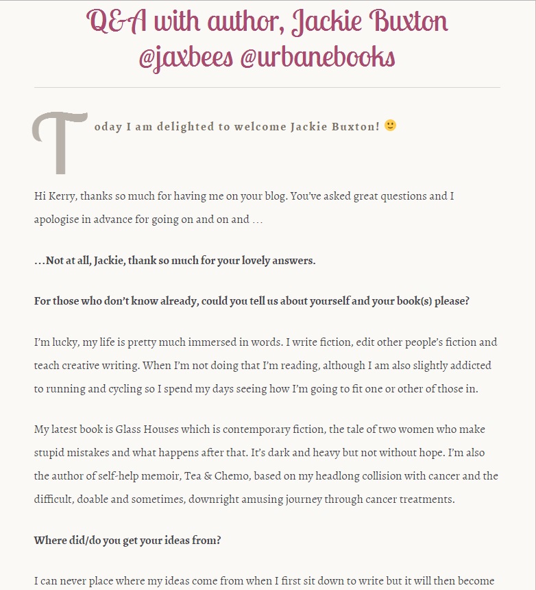 I'm over at Chat About Books today, chatting with the lovely Kerry Parsons about books and stuff: character names, new endings
